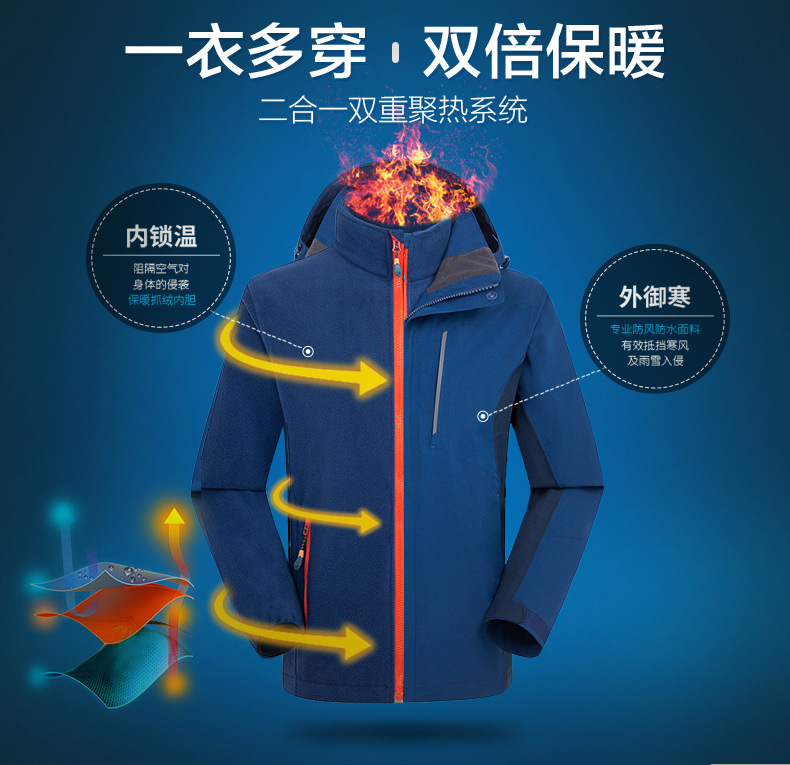 沖鋒衣定做防風透氣防水秋冬兩件套,可拆卸